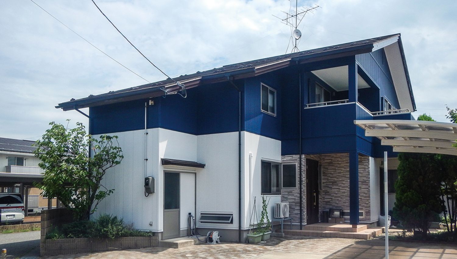 外壁の修繕・塗装工事を行い、白色と紺色が映える、より鮮やかな外観へと生まれ変わりました。